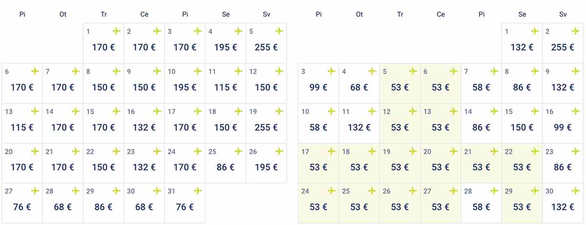 Gan autobusu, gan aviobiļešu cenas svārstās atkarībā no sezonas un pieprasījuma - tāpēc laicīga rezervācija parasti nozīmē zemāku cenu.
